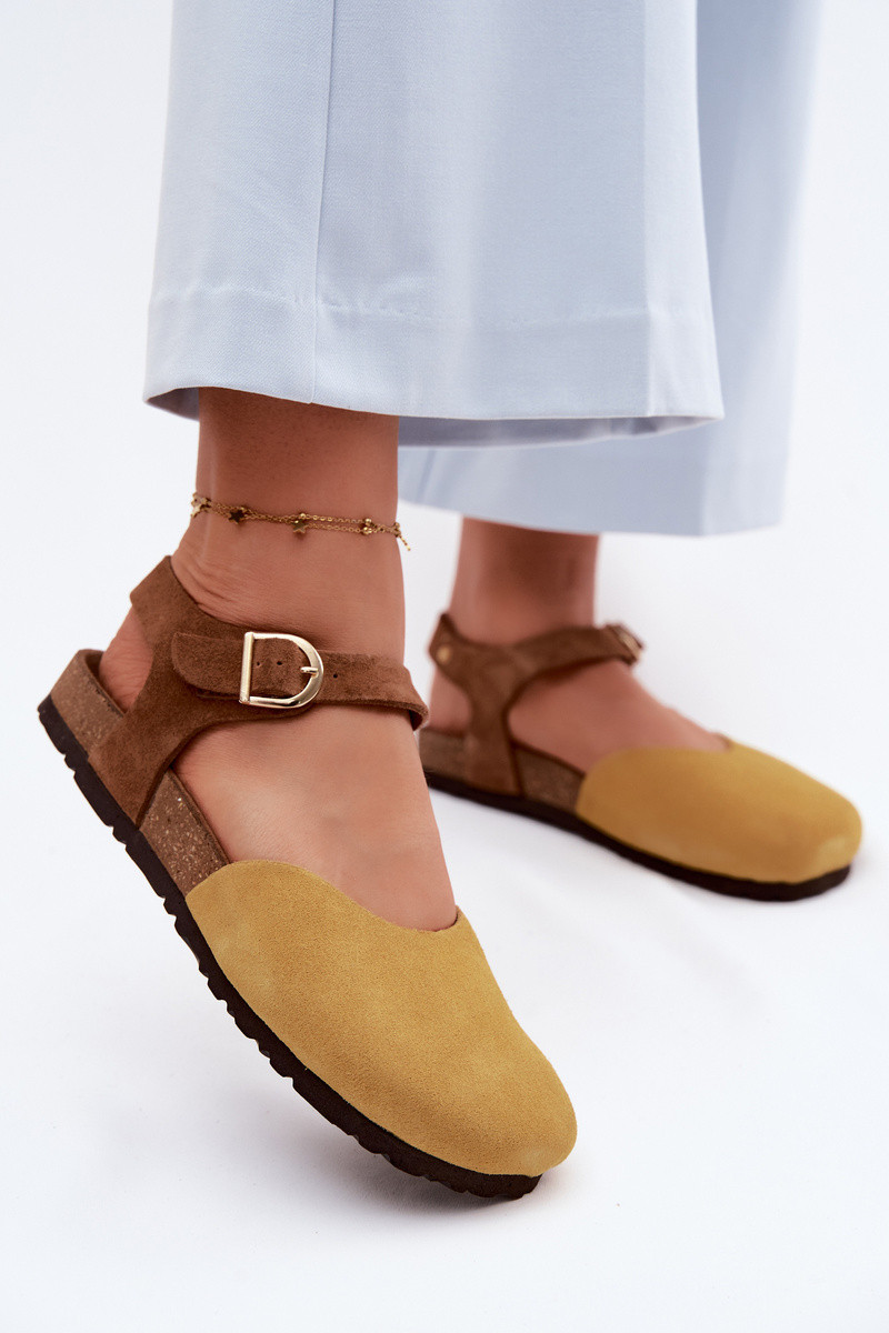 Odinės zomšinės basutės su uždarais pirštais Tai turiciejka H7365-07 geltonos spalvos
