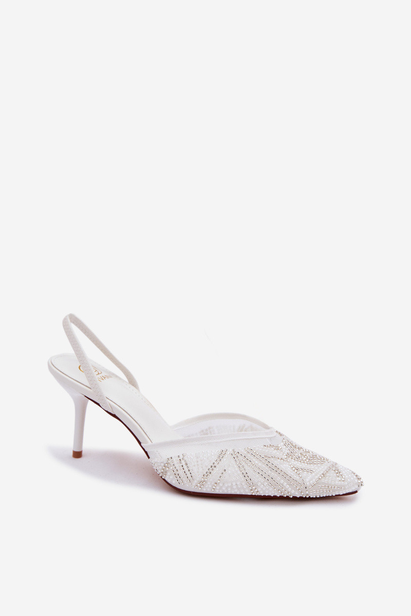 Dekoruotos basutės su tinkleliu ir plonais kulniukais smėlio spalvos Bedira