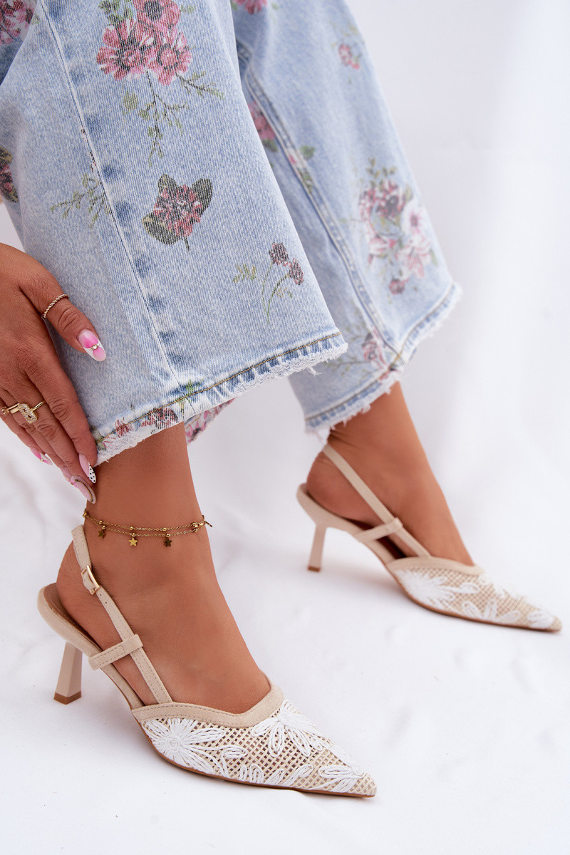 Smėlio spalvos aukštakulniai sandalai su gėlėmis Kelmira