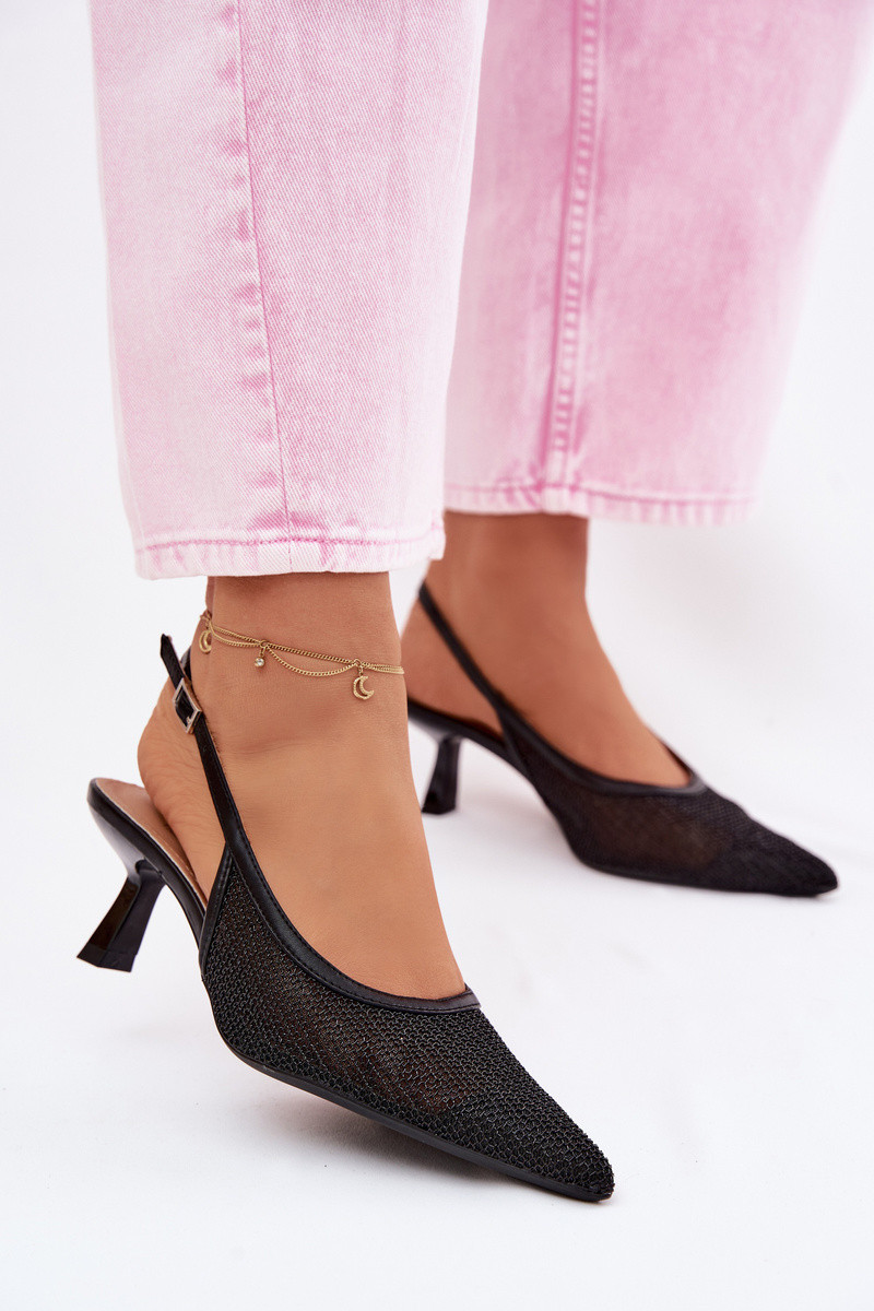 Juodos tinklinės basutės ant smulkaus kulno Calora