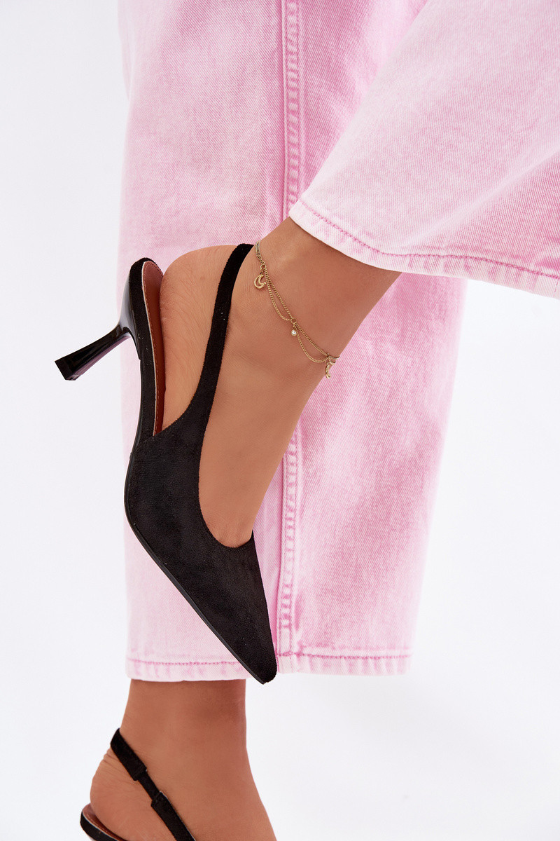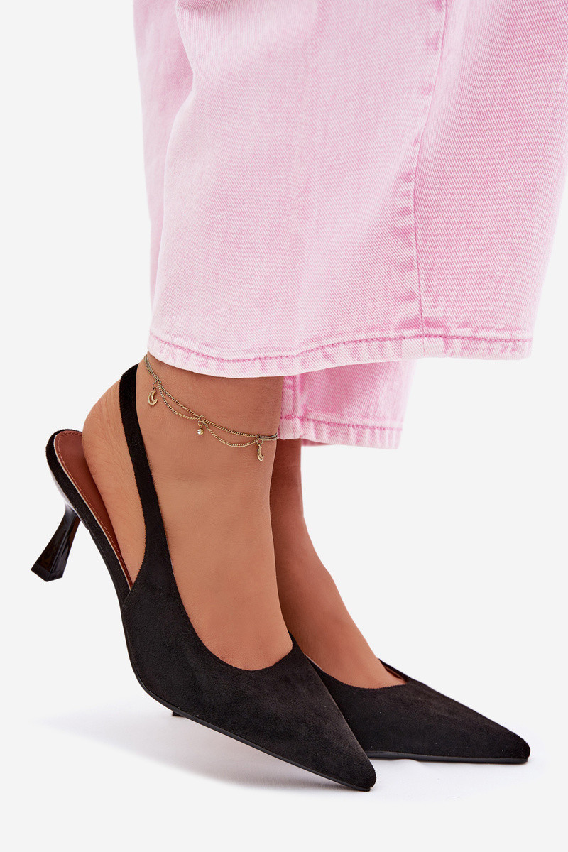 Moteriškos rožinės basutės su plonais kulniukais iš dirbtinio zomšo Saria