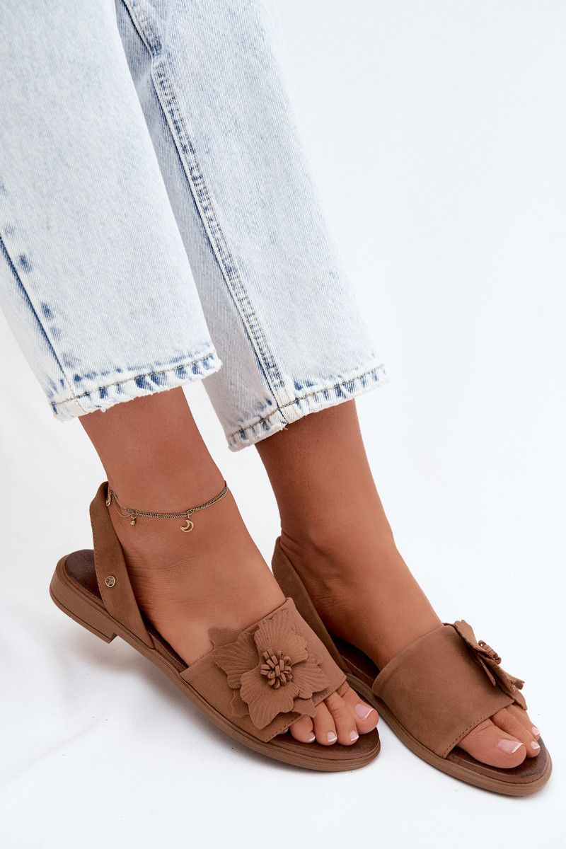 Oda Zomšinės basutės su plačiais kulniukais Su puošniais Gėlė Zazoo 407471 oranžinės...
