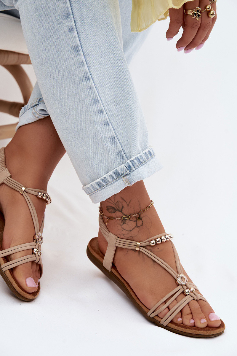 Smėlio spalvos lygiapadės basutės moterims su juostelėmis Zelda