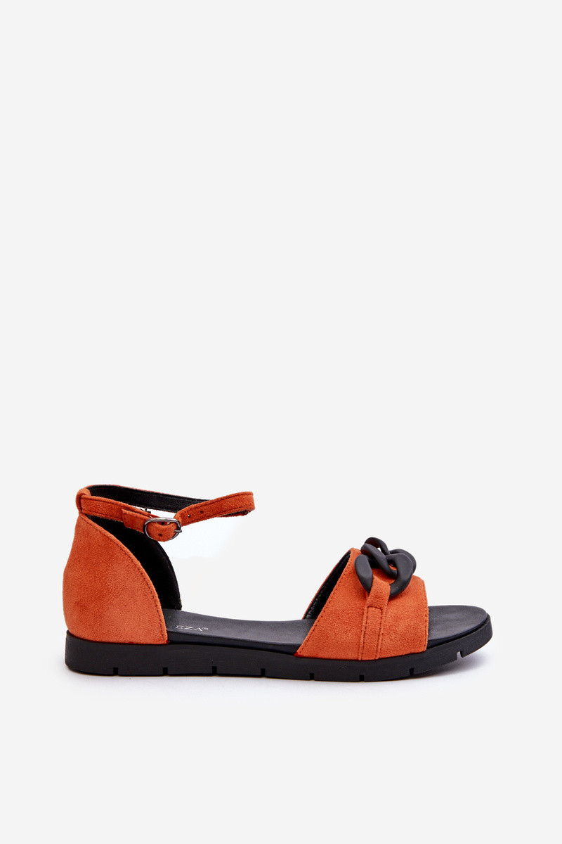 Lygiapadės basutės moterims su grandinėlėmis Vinceza 17320 oranžinės spalvos