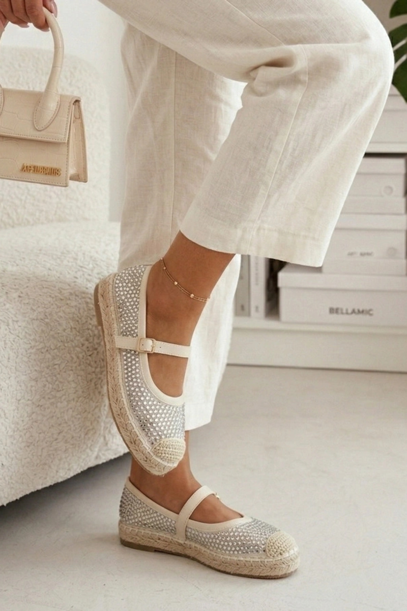 Smėlio spalvos espadrilės ant platformos puoštos cyrkonio akmenukais Mireille