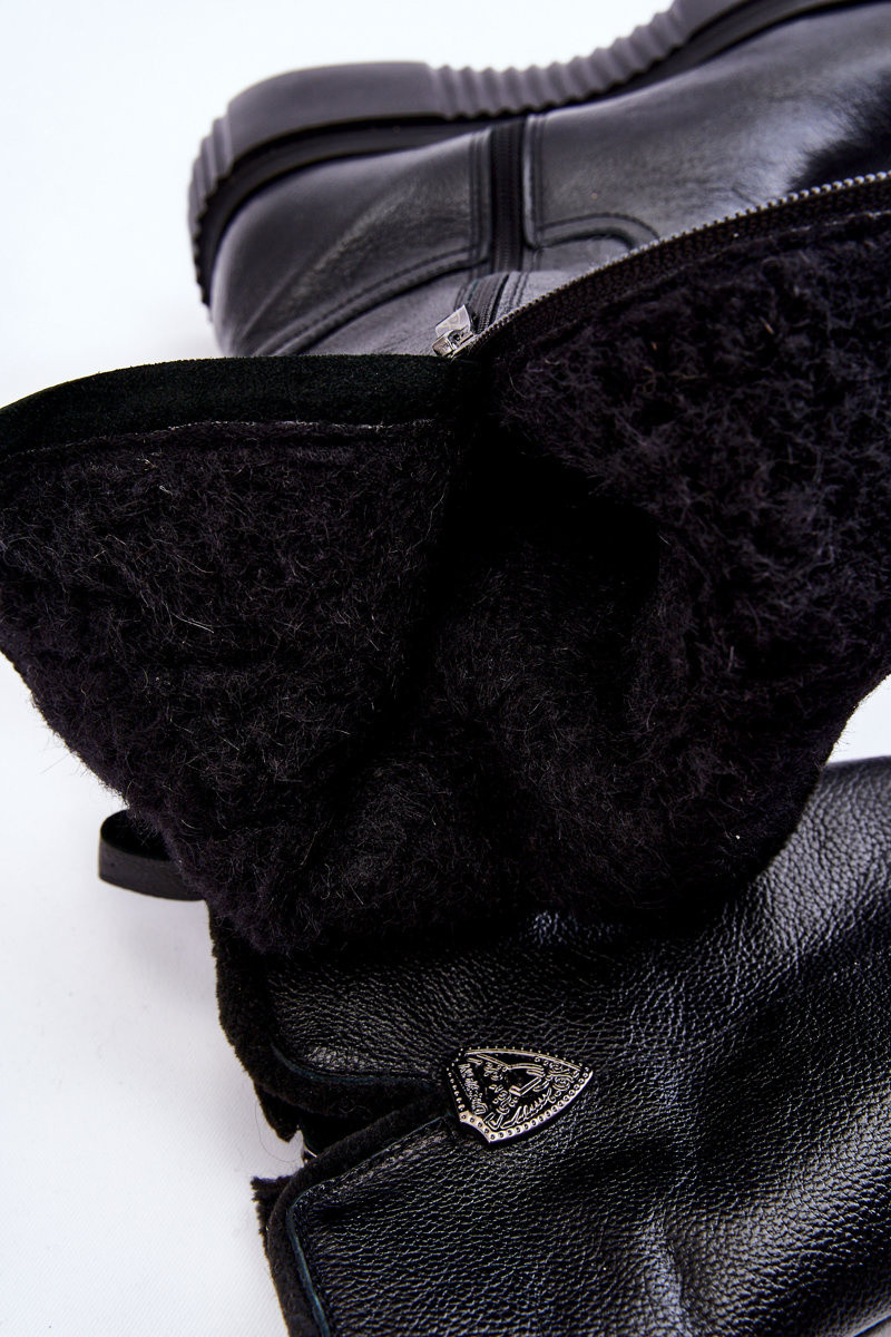 Zazoo 70121 odiniai moteriški ilgaauliai batai su vilna, juodos spalvos