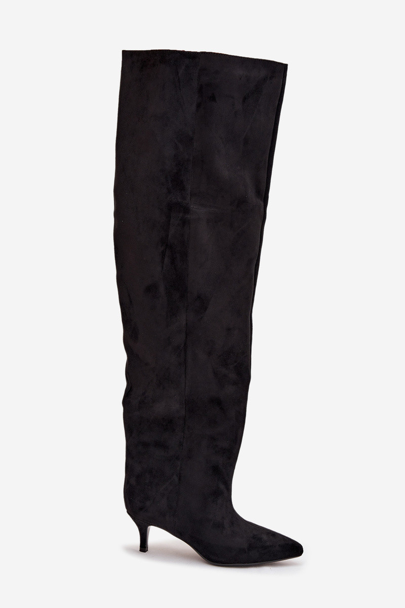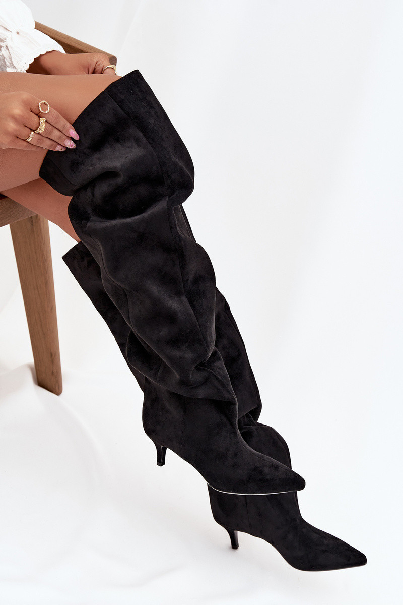 Įsispiriami moteriški ilgaauliai batai su plonais kulniukais juodos spalvos Ysolienne