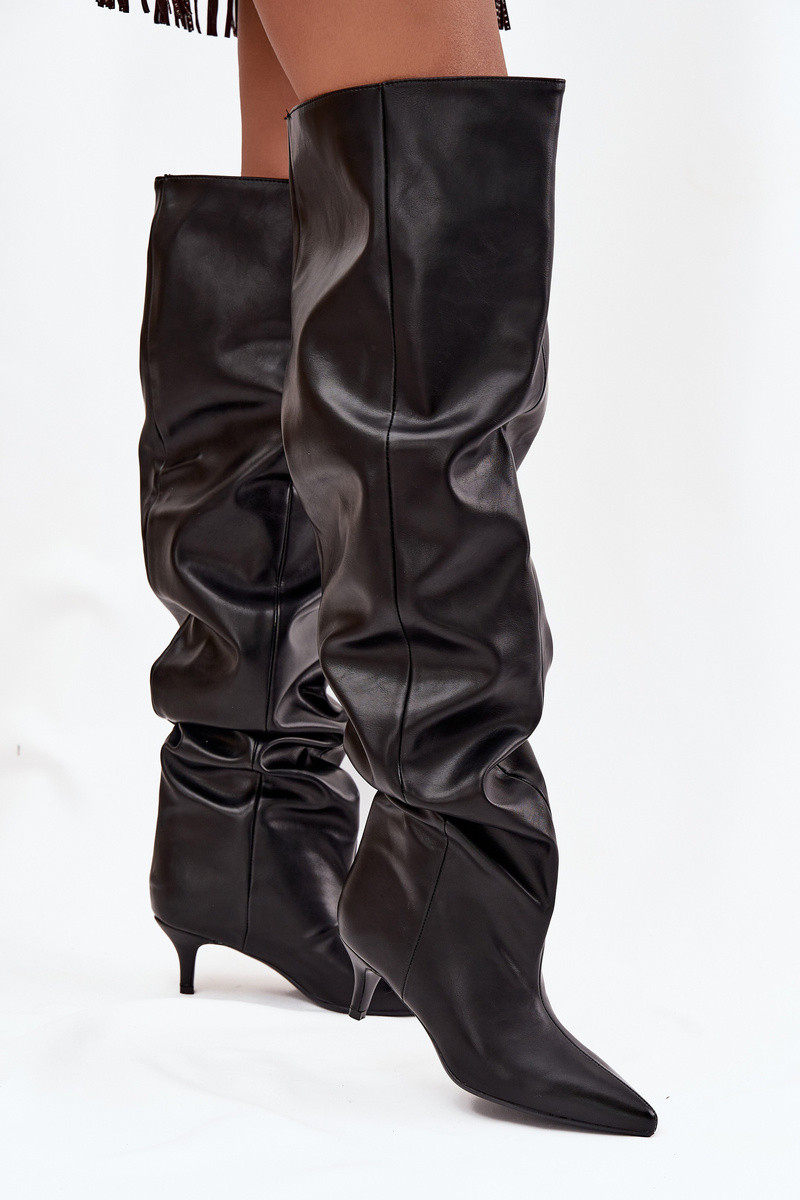 Įsispiriami moteriški ilgaauliai batai su plonais kulniukais juodos spalvos Ysolienne