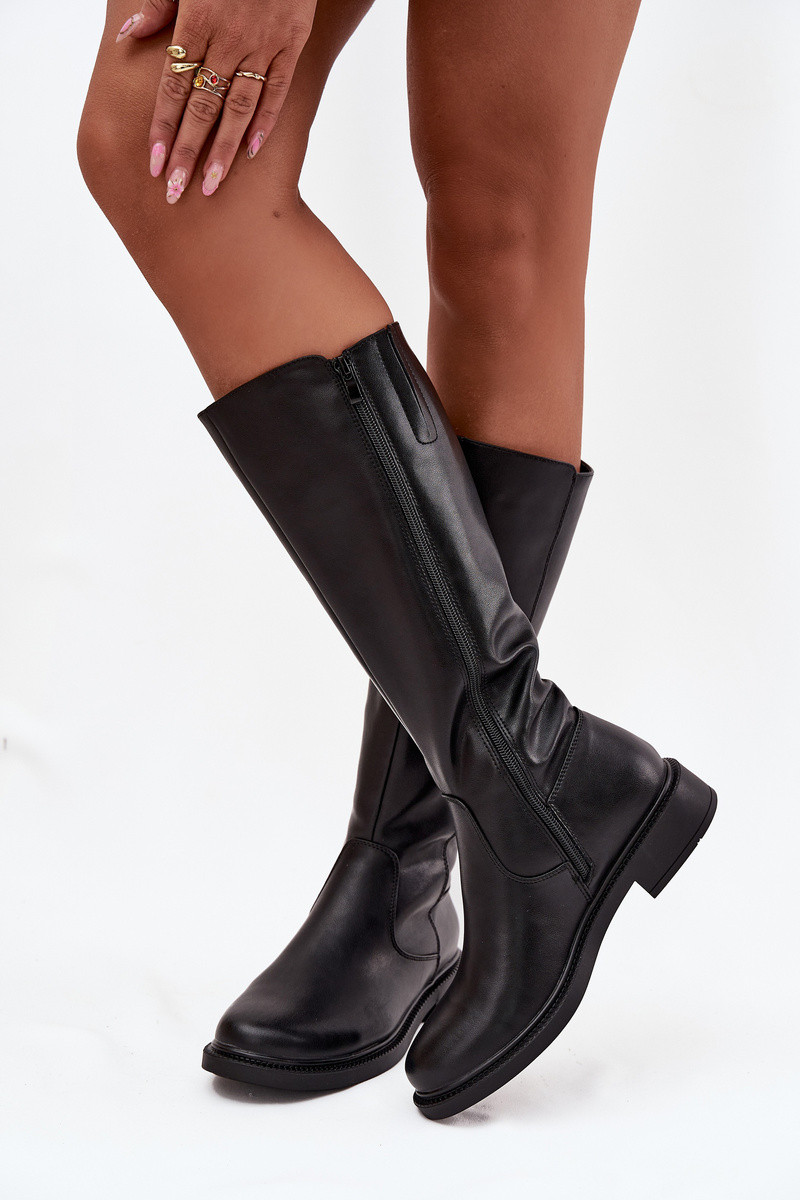 Odiniai šilti ilgaauliai batai su plačiais kulniukais Sergio Leone KZ25600-S juodos spalvos