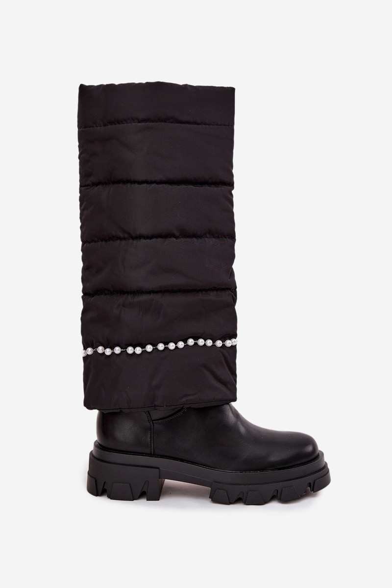 Šilti ilgaauliai batai su karoliukais juodos spalvos Irvette