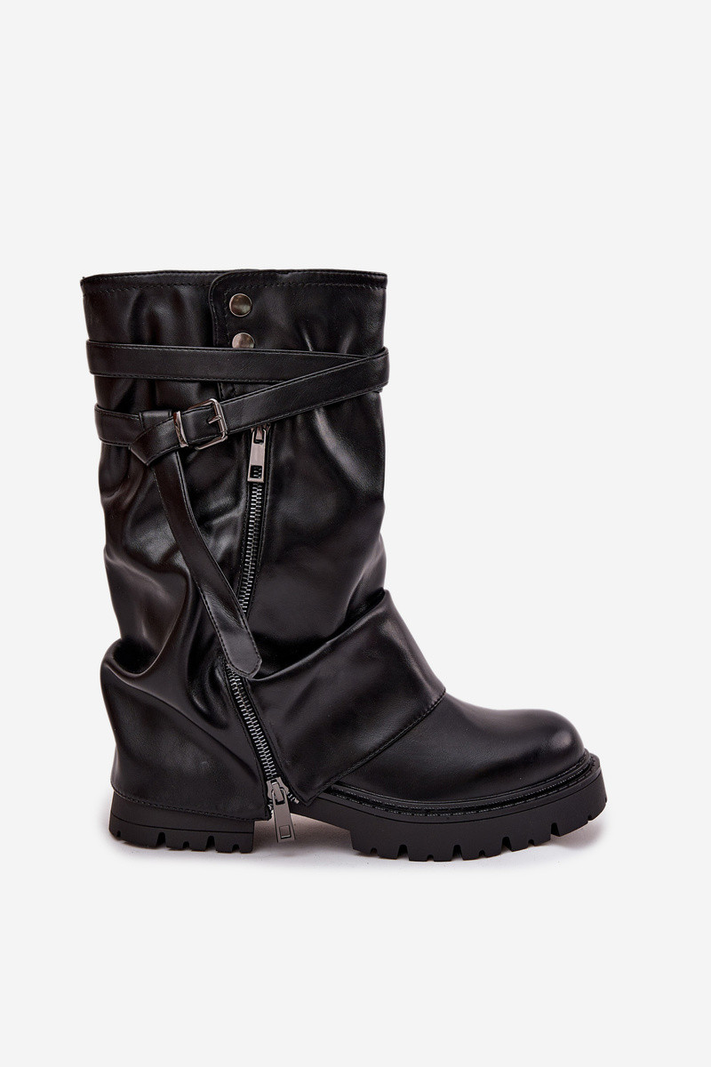 moteriški ilgaauliai bataisuINyĮiniętą CholeĮką Blauzdos vidurys su dirželiais juodos spalvos Darisa