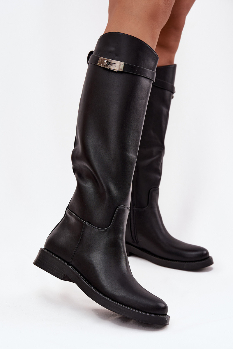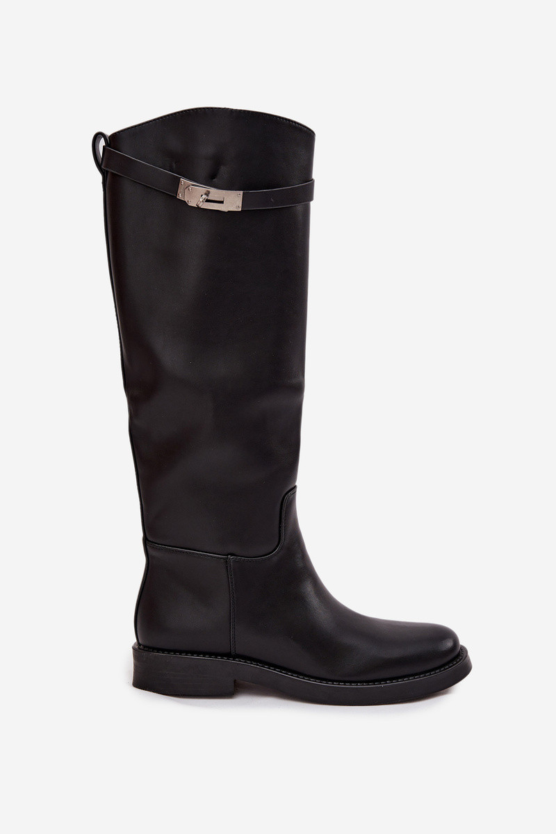 Moteriški ilgaauliai batai su dekoruotais kulnais iš dirbtinės odos juodos spalvos Palisse