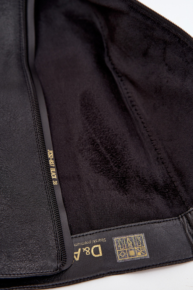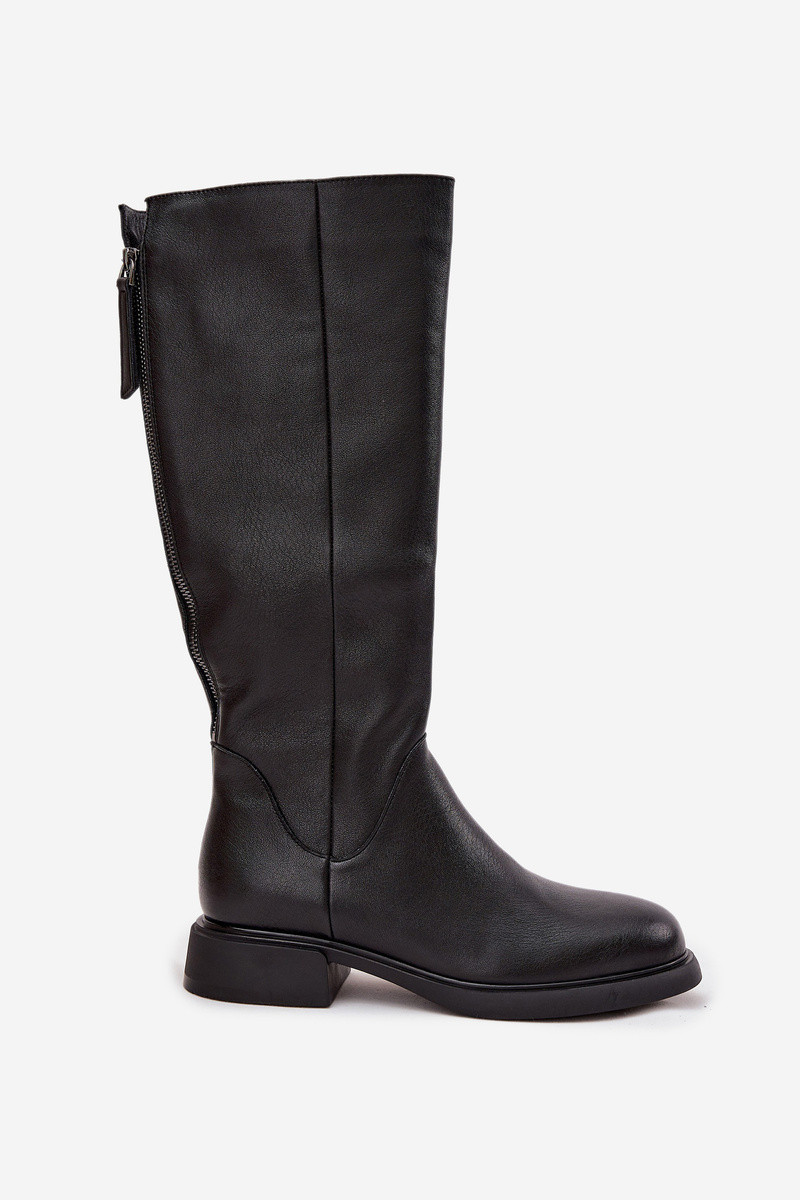 Dirbtinės odos moteriški ilgaauliai batai su plačiais kulniukais šilti D&A JC52-837 juodos spalvos