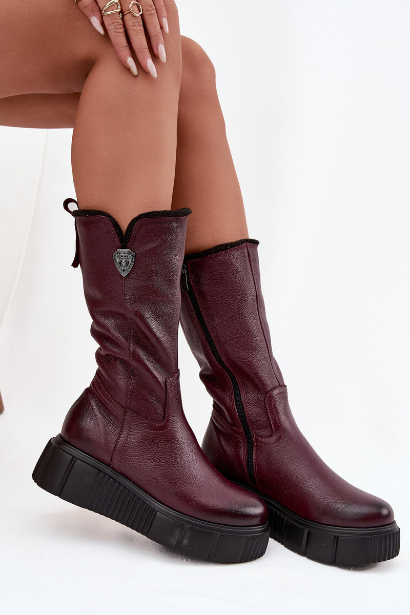 Moteriški dirbtinės odos ilgaauliai batai su vilna Zazoo 70121 bordo spalvos