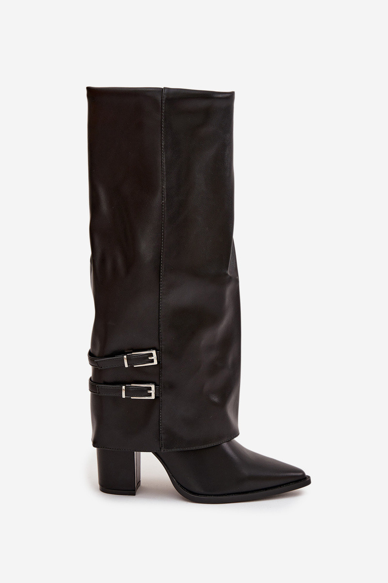 moteriški ilgaauliai batai su kulniukaissuINyĮiniętą CholeĮką I su sagtimismi juodos spalvos