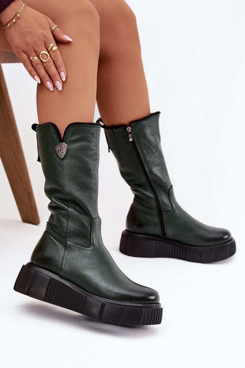Zazoo 70121 odiniai moteriški ilgaauliai batai su vilna žalios spalvos