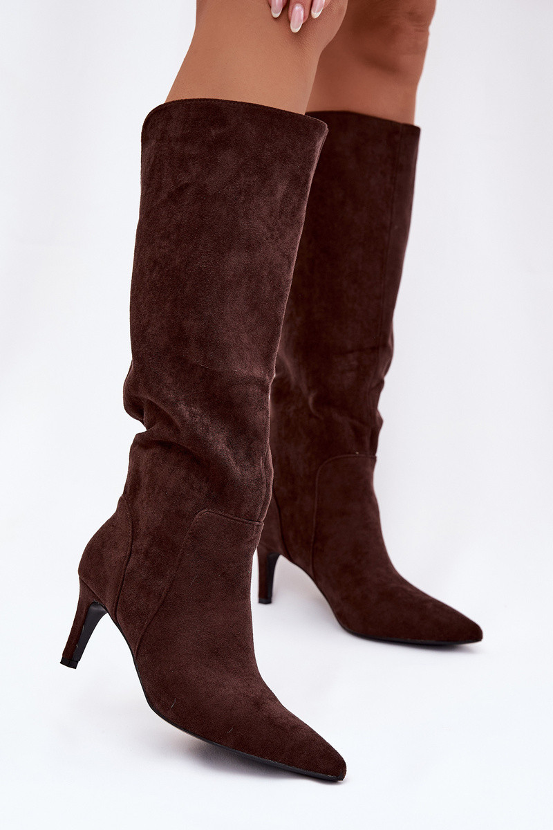 moteriški ilgaauliai batai su plonais kulniukais pašiltintisuiš eko zomšosu CzekoladoĮe Arelisse