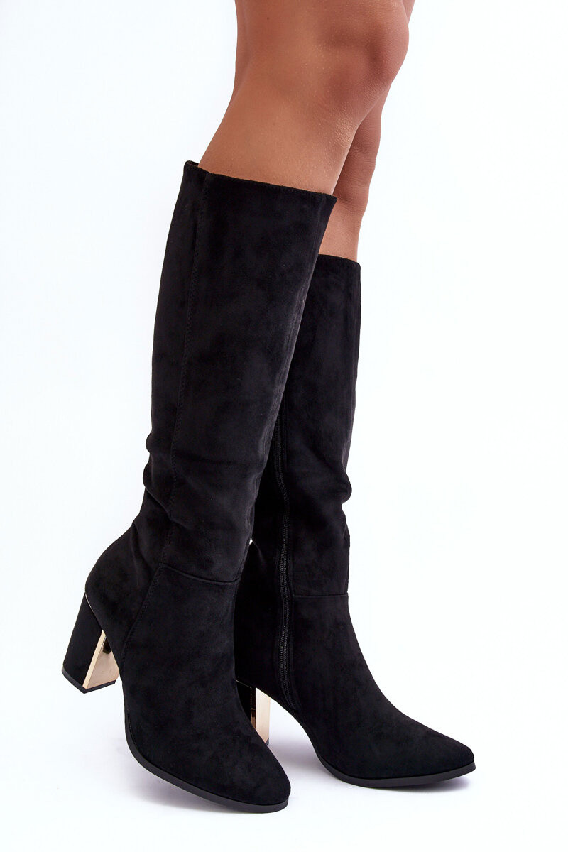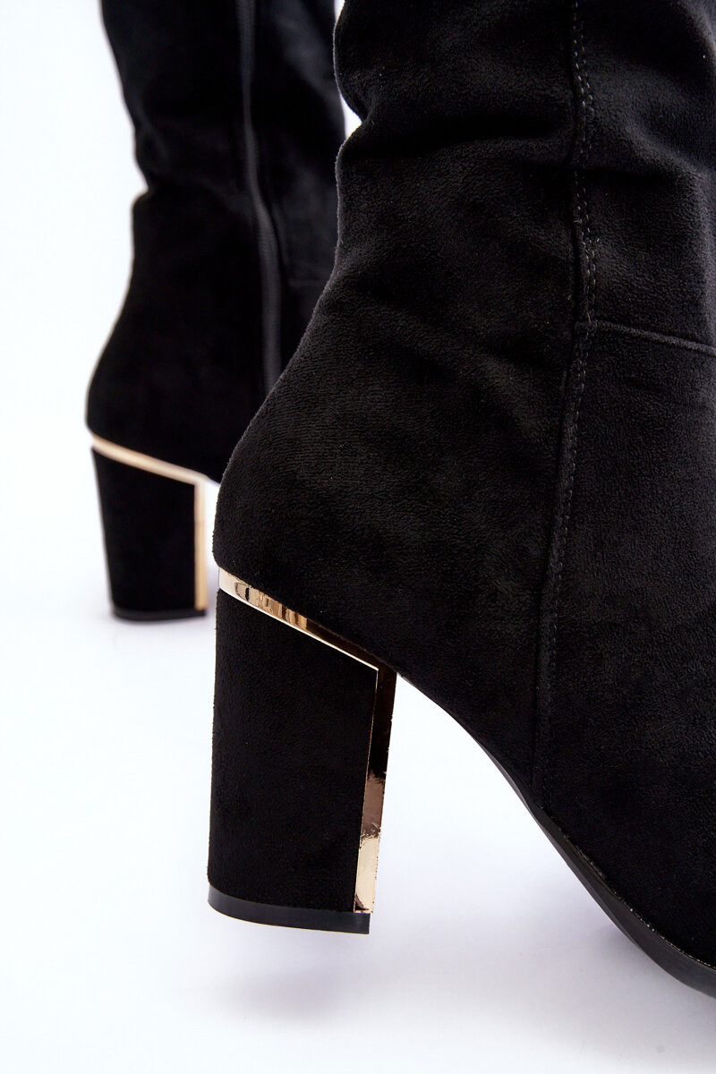 ilgaauliai batai Prieš Kelį su kulniukais iš zomšos juodos spalvos Kilrenita