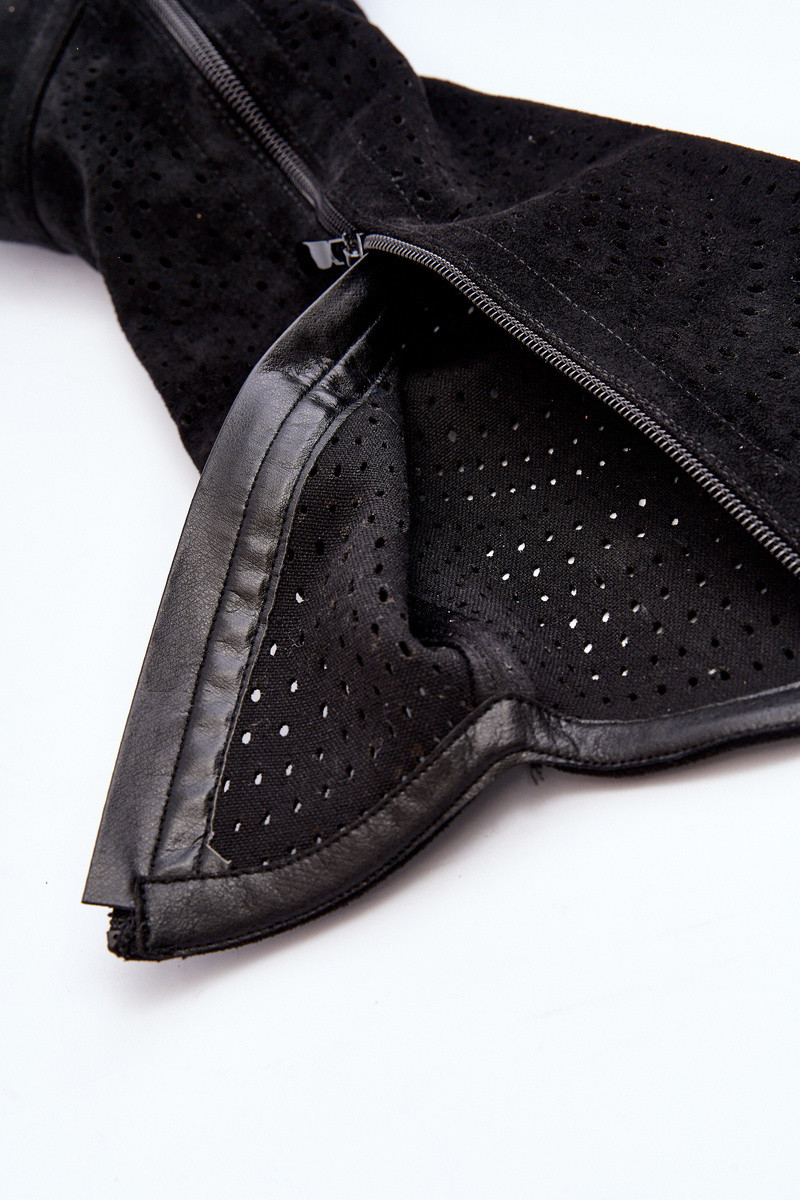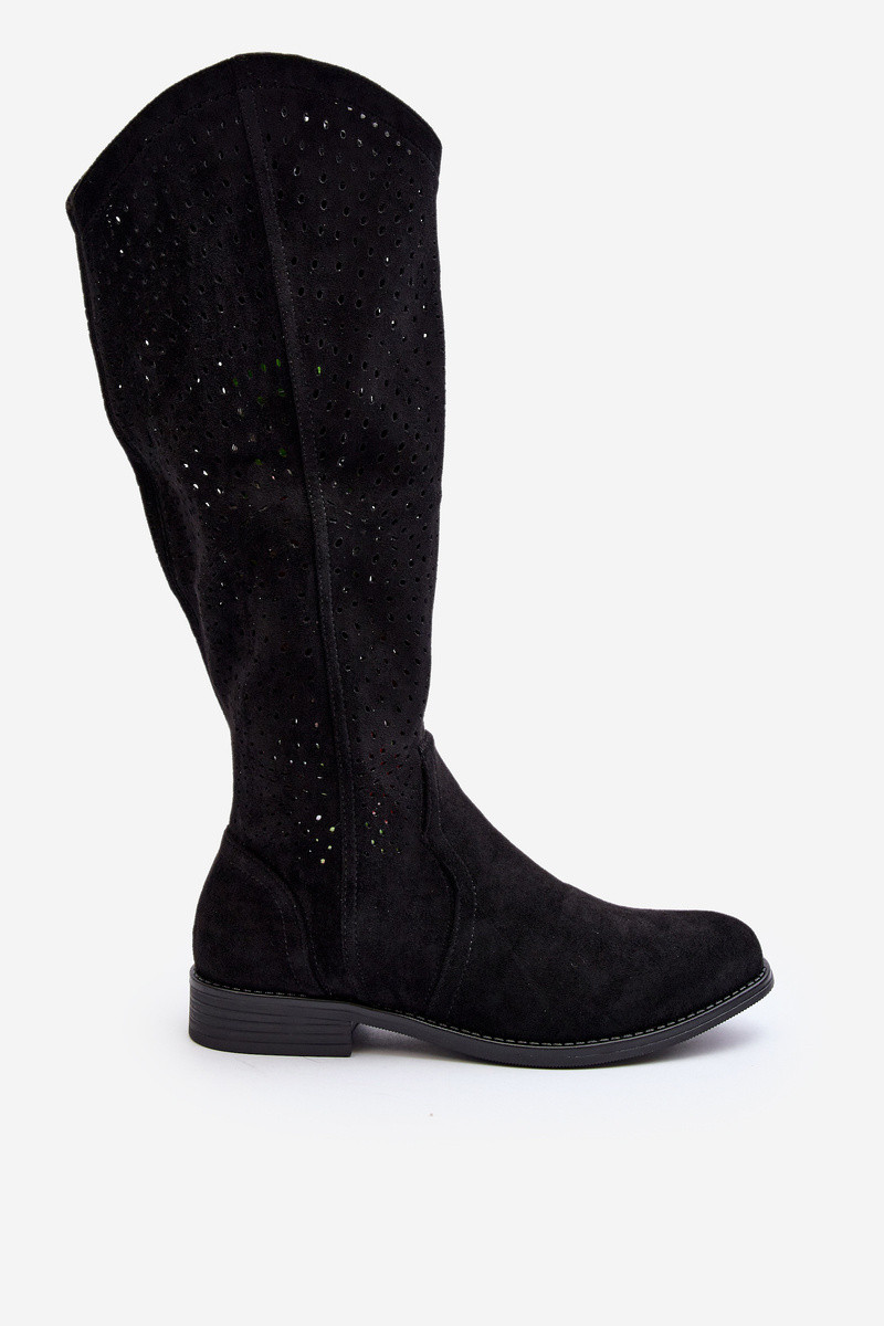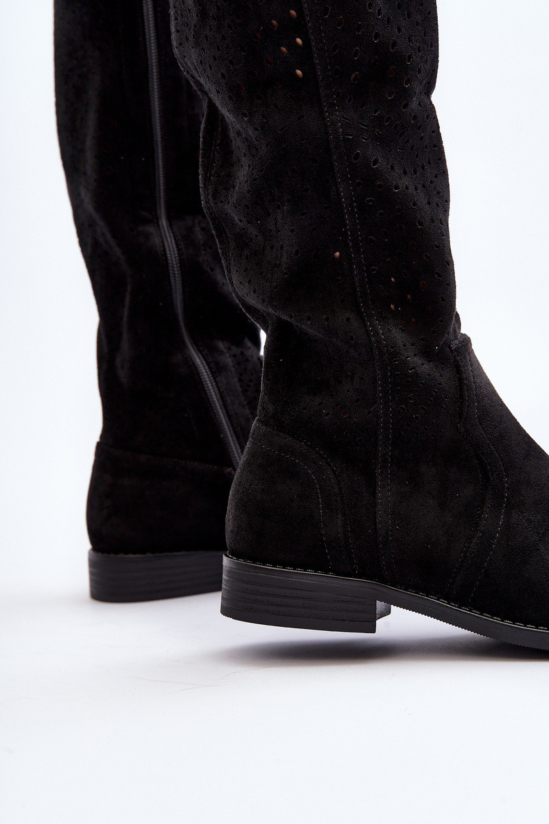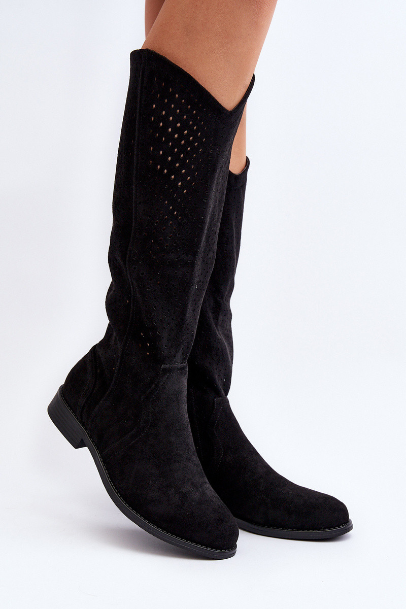 S.Barski HY66-150 su ažūro elementais ilgaauliai batai su plačiais kulniukais juodos spalvos