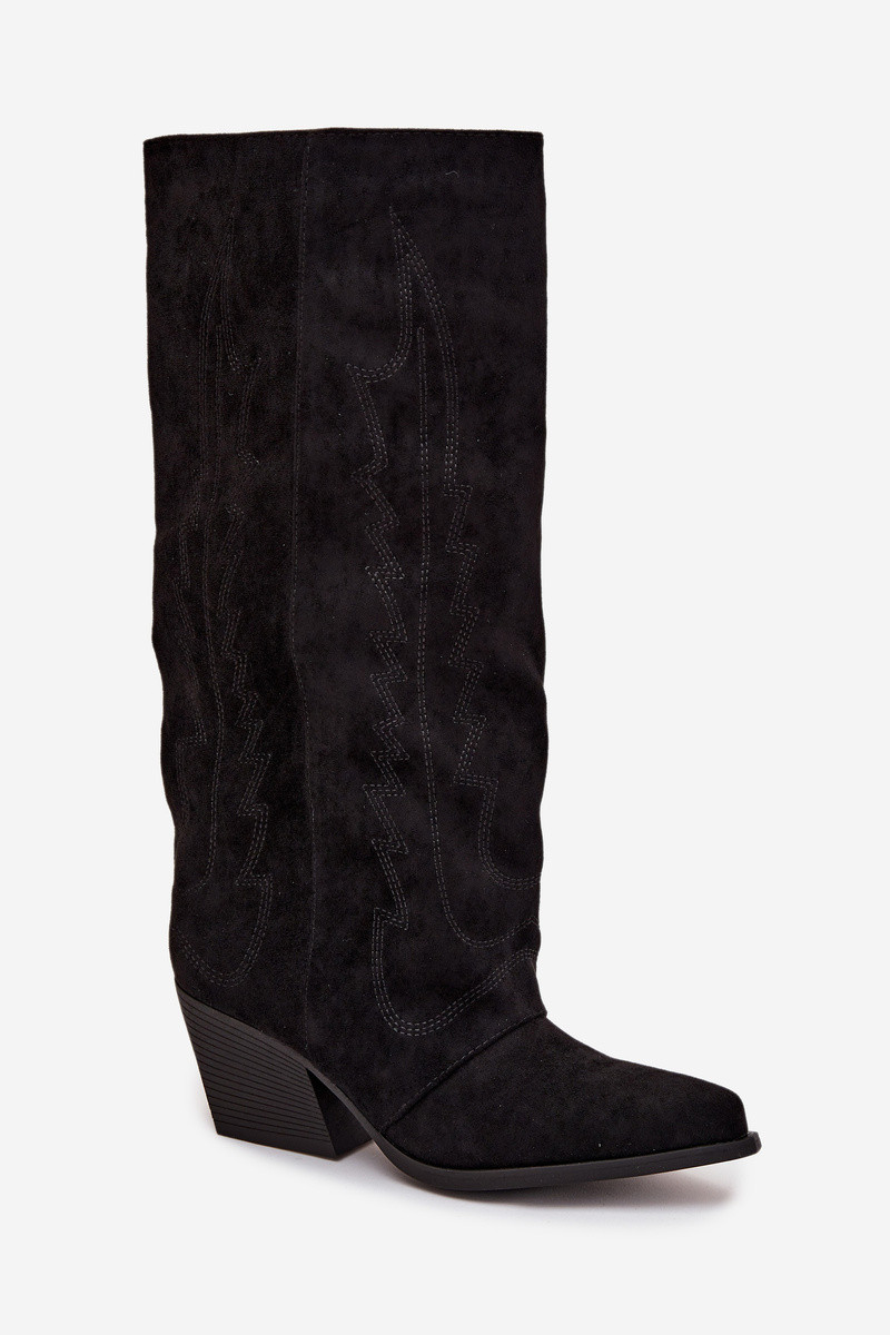 Ilgaauliai kaubojiško stiliaus moteriški batai juodos spalvos Isalina