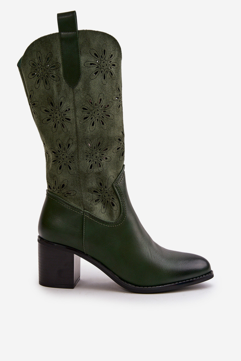 Moteriškas su aužūro elementais ilgaauliai batai Blauzdos viduryssuiš eko zomšosu žalios spalvos Nevilos