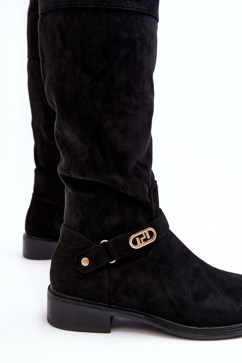 pašiltinti iš zomšos ilgaauliai batai su plačiais kulniukais S.Barski HY07-31 juodos spalvos