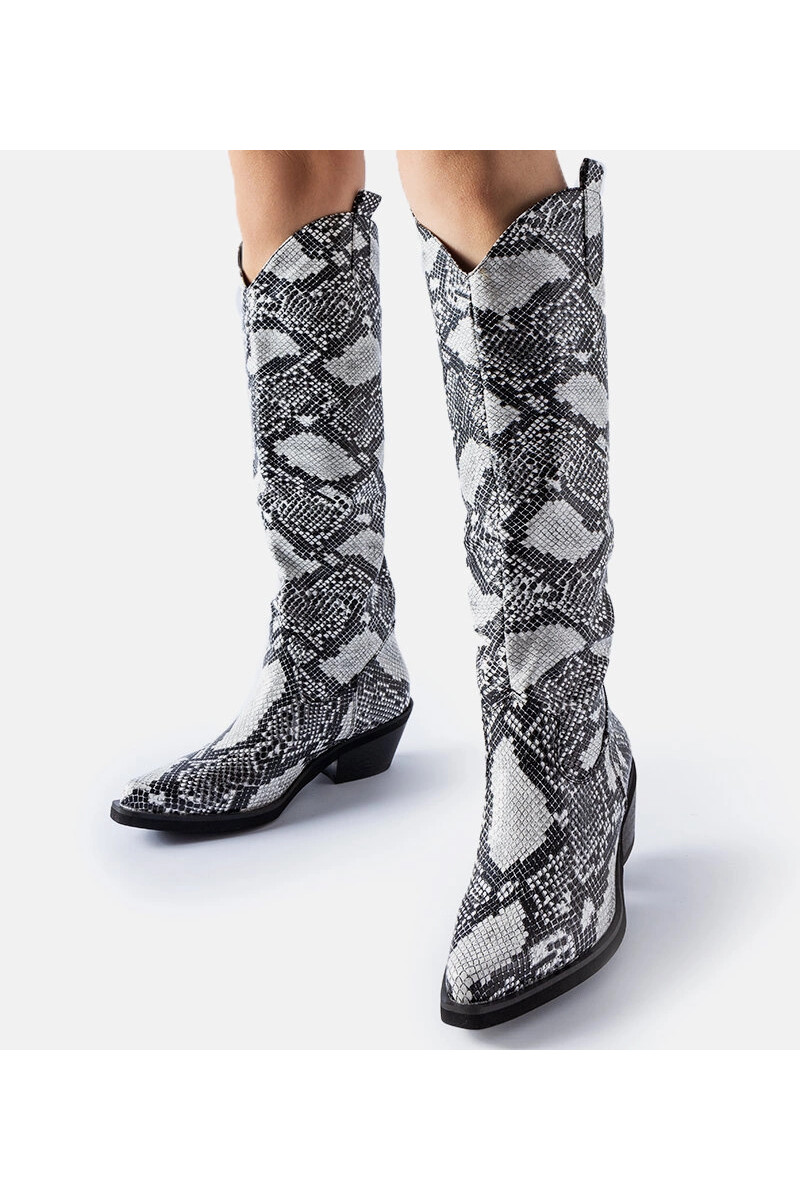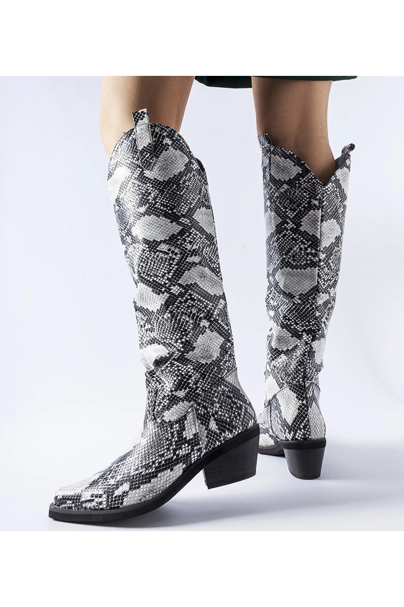 „Chapin“ juodai balti kaubojiški batai su gyvačių raštu