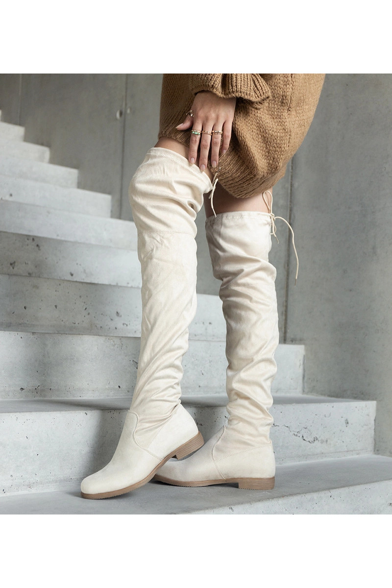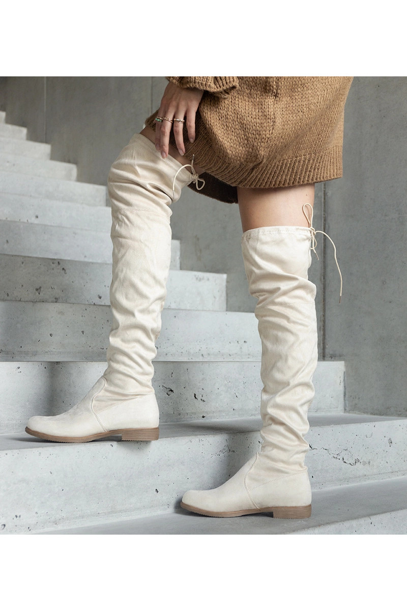 Bežiniai ilgi auliniai batai ant platformos iš eko-zamsu Hallora