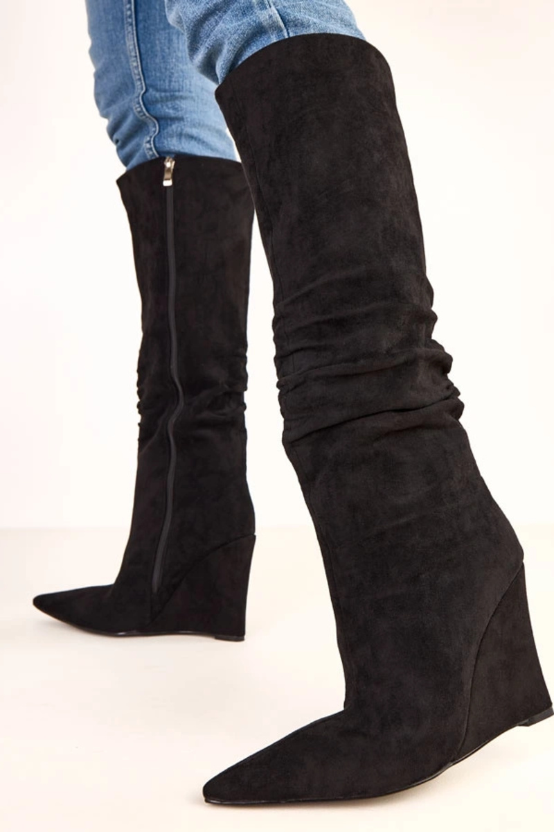 Juodi ilgaauliai batai ant siauros platformos Asena