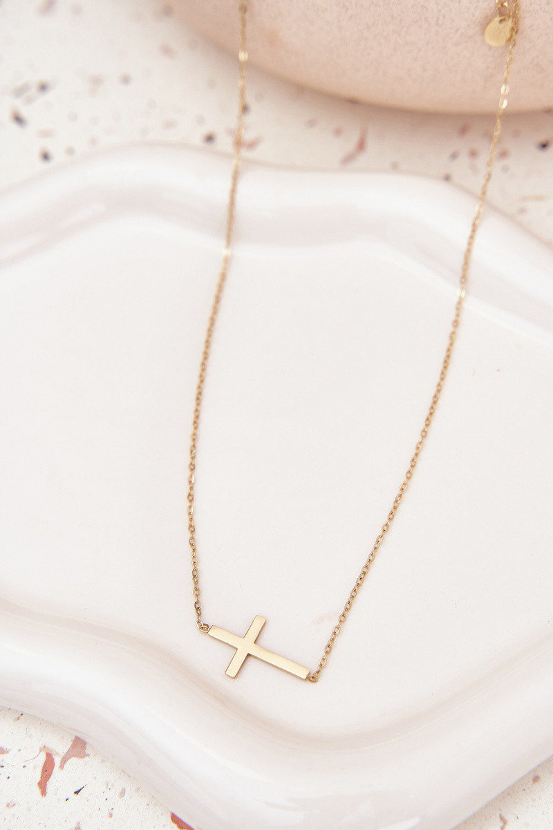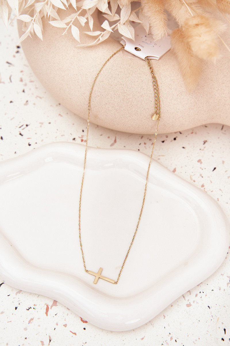 Grandinėlis su kryžiumi iš chirurginio plieno aukso spalvos