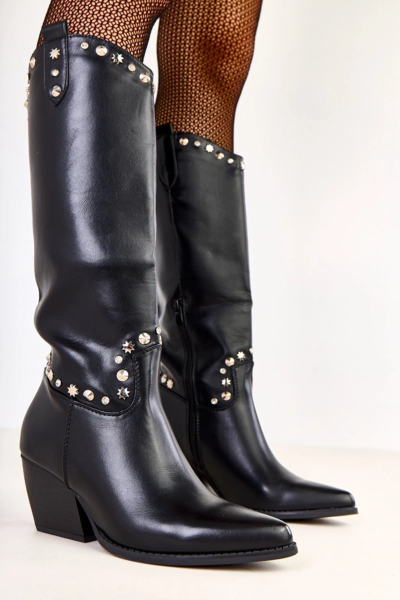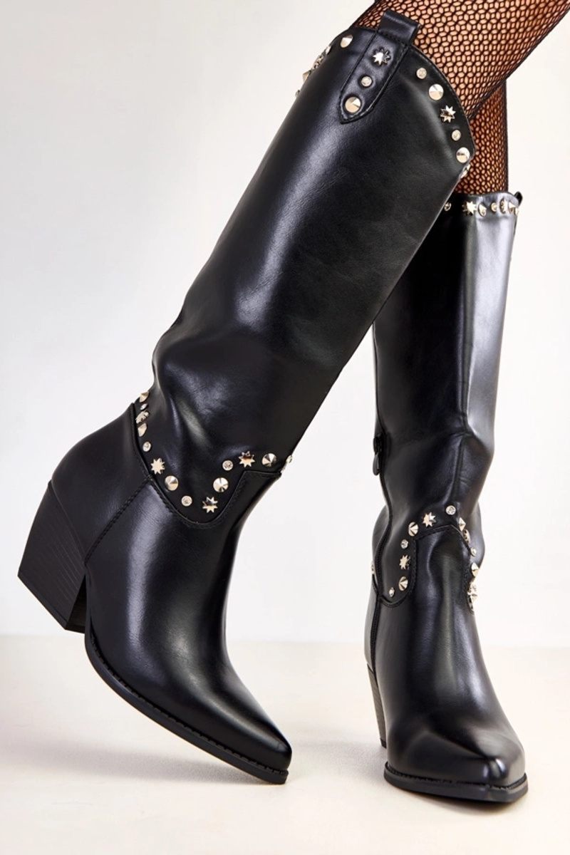 Juodi moteriški kaubojų batai puošti blizgučiais Horsey