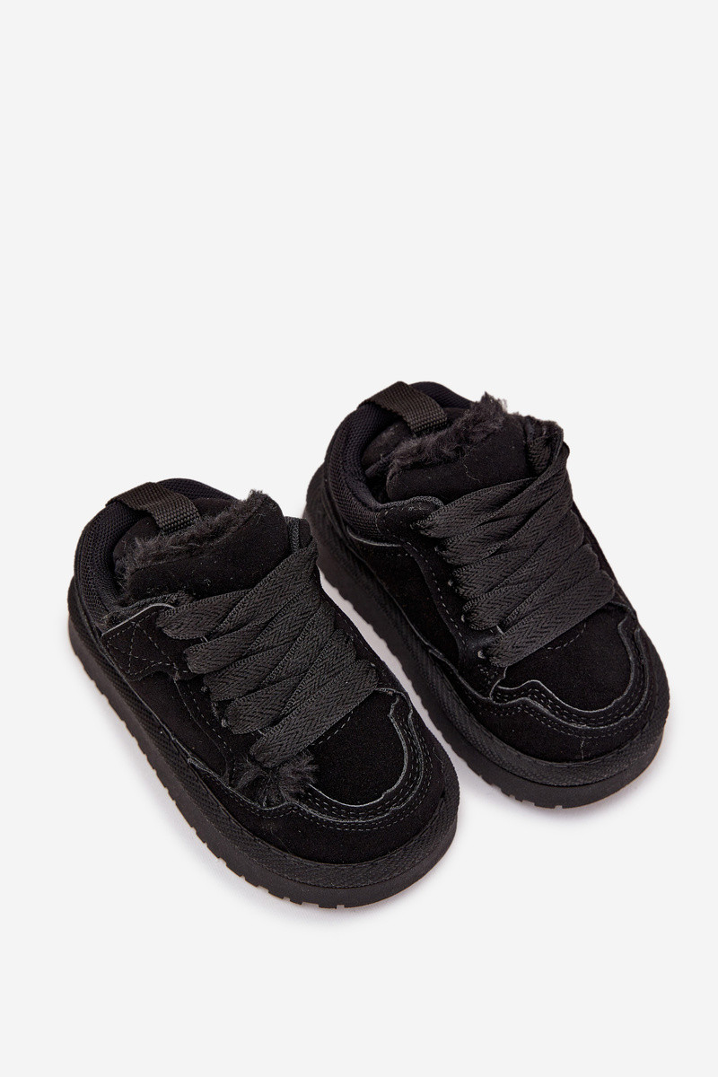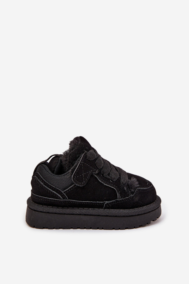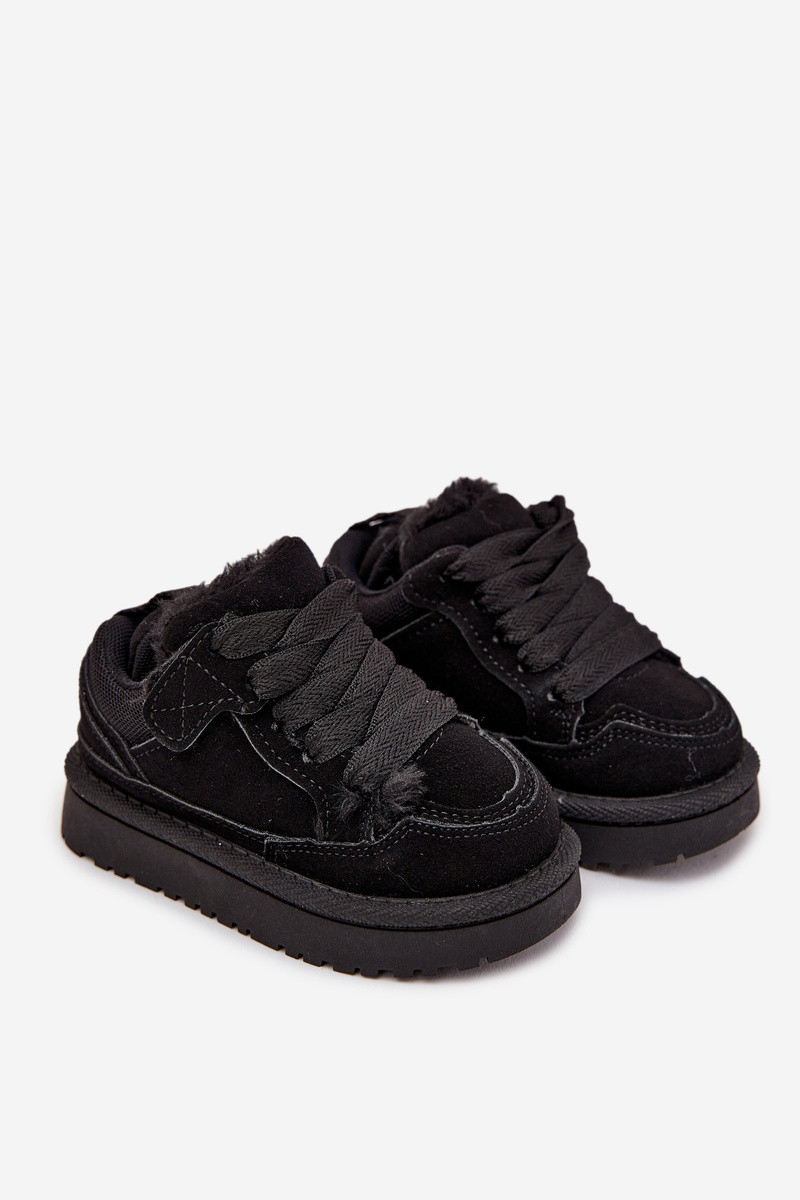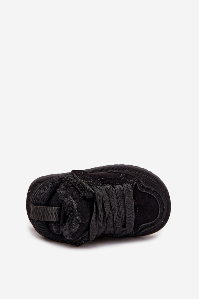 Juodos spalvos šilti vaikiški sportbačiai su kailiuku viduje Mireen