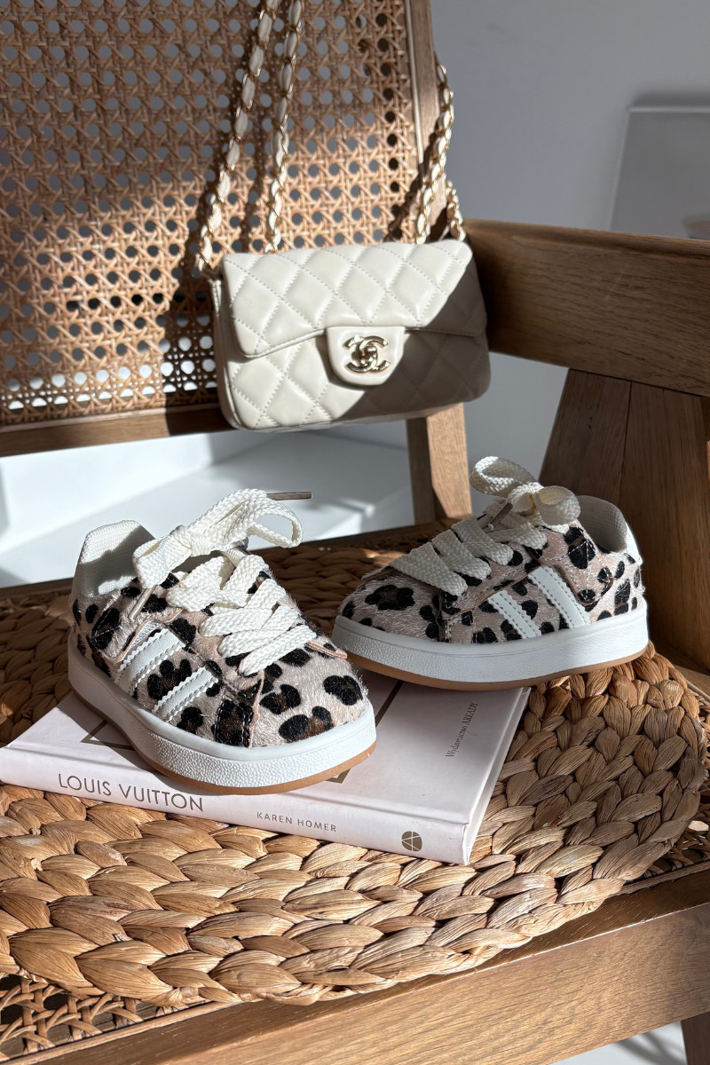 Vaikiški sportiniai bateliai Sneakers modelio su leopardo kailio raštais, smėlio spalvos, Amelle
