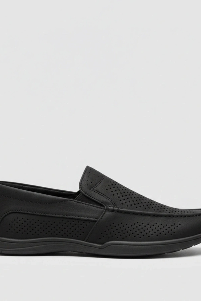Juodi perforuoti vyriški mokasai Finn