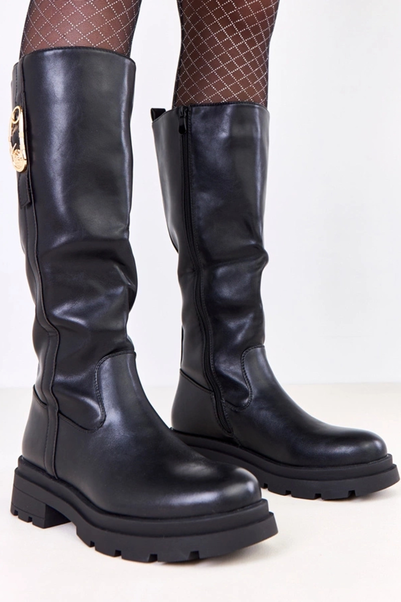 Juodi ekologiškos odos ilgaauliai su aukso papuošimu Meliros
