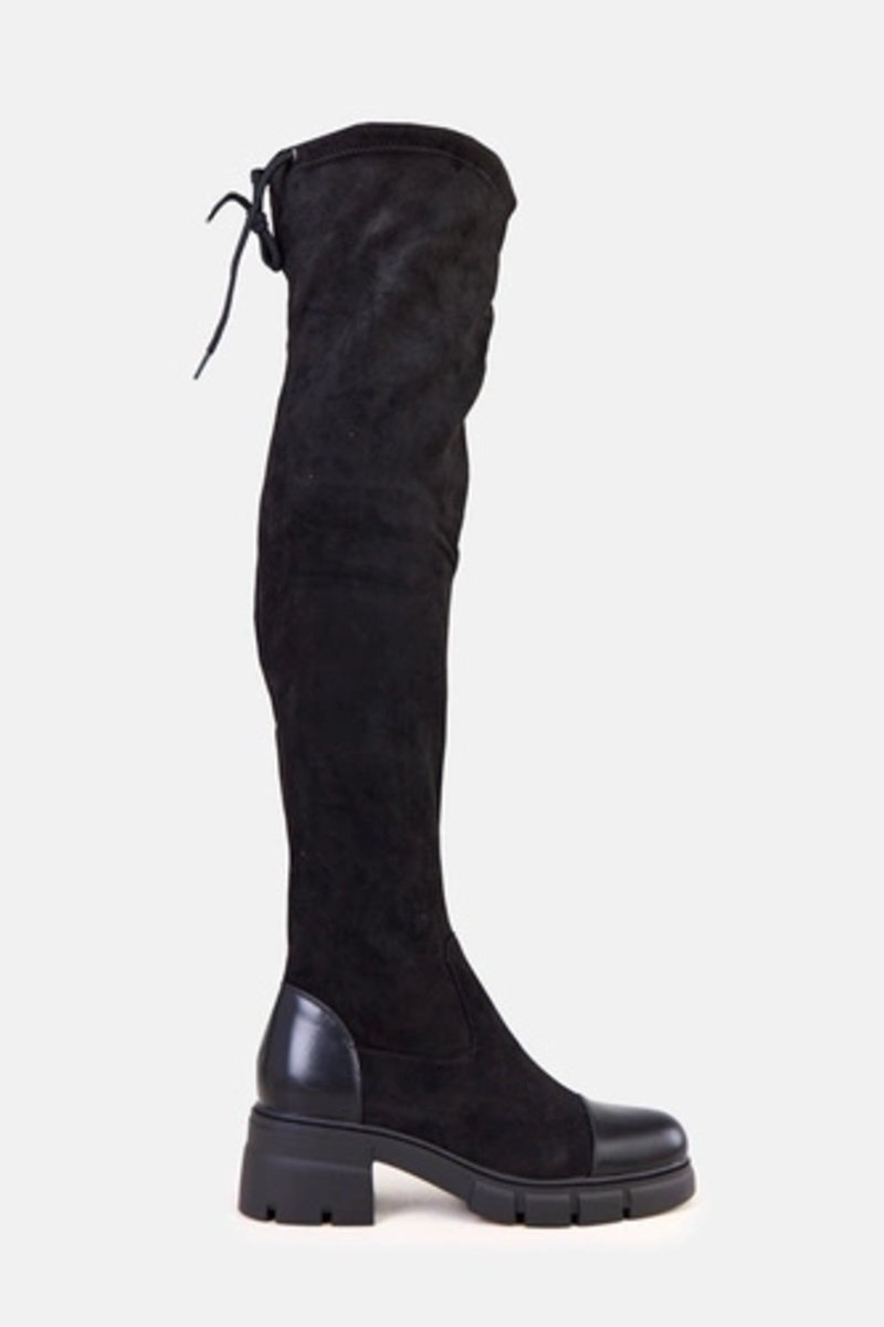 Juodi dirbtinės zomšos ilgaauliai virš kelių Marianna