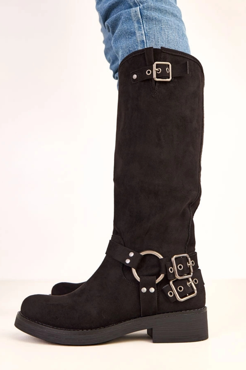 Juodi ilgaauliai batai su dekoratyvinėmis sagtimis Merena
