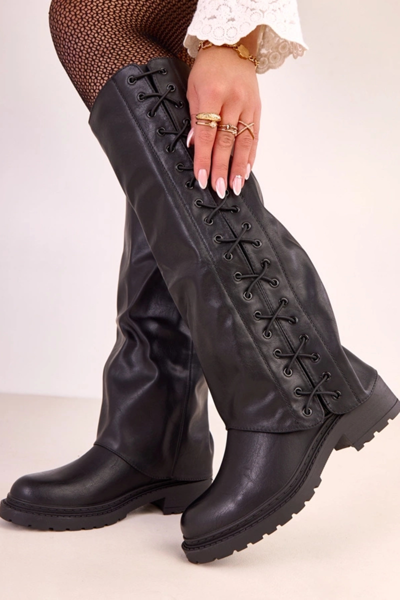 Juodi ilgaauliai batai su nuimamu aulu Elane