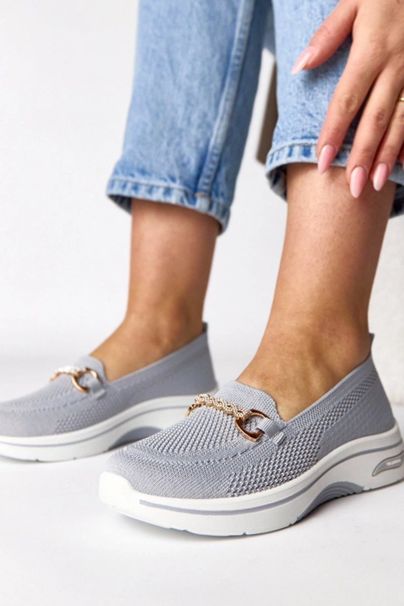Pilki įmaunami medžiaginiai sportbačiai su cirkoniais Gisele