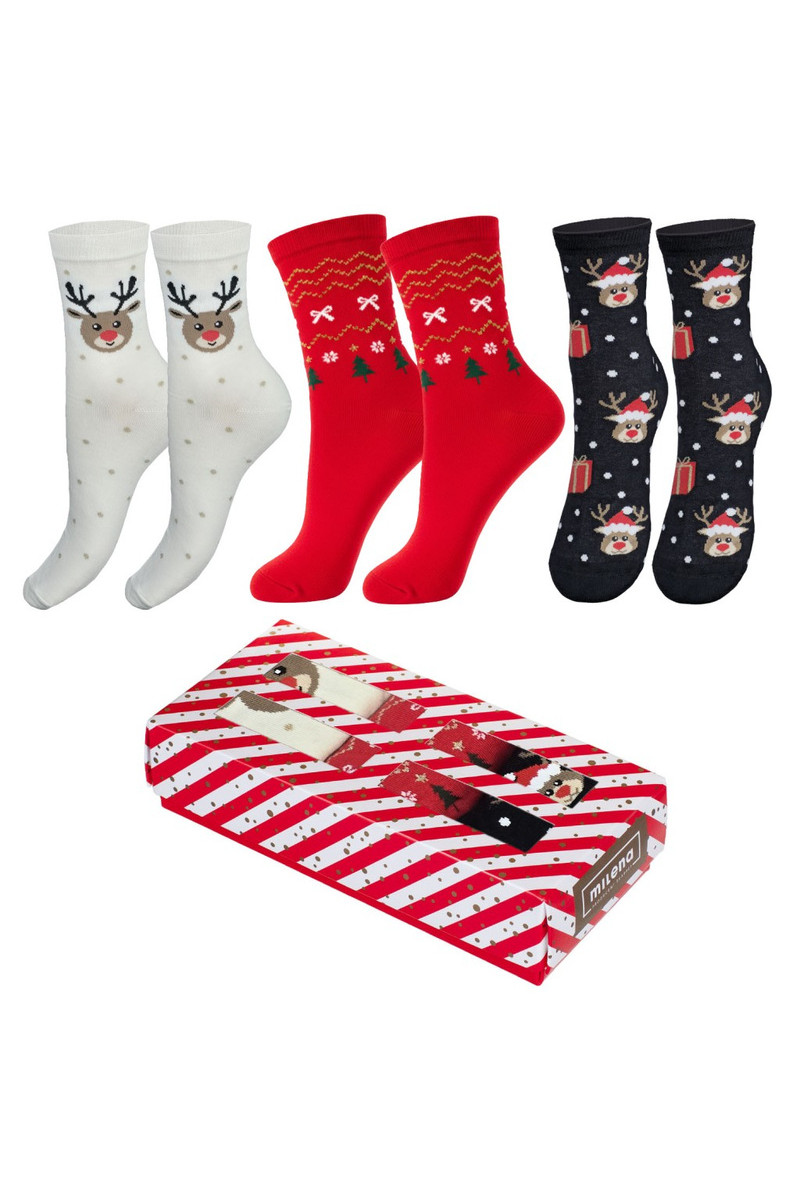 Kalėdinių moteriškų kojinių rinkinys dėžutėje, 3 poros