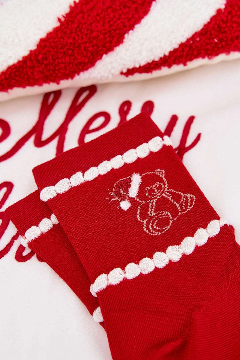 Kojinės Moteriškas Christmas Meškiukai Dangtelyje Santa Clausa raudonos spalvos