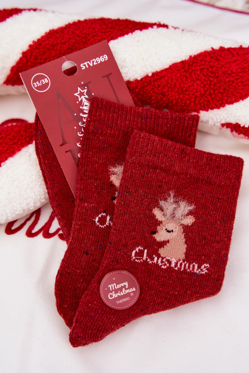 Kojinės Moteriškas Christmas su elniukais INełna Alpaka raudonos spalvos