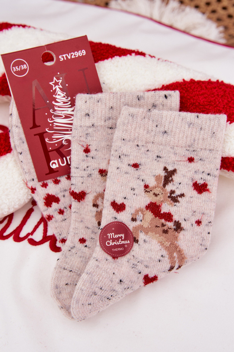Kojinės Moteriškas Christmas su elniukais I Širdelėsmi INełna Alpaka pilkos spalvos