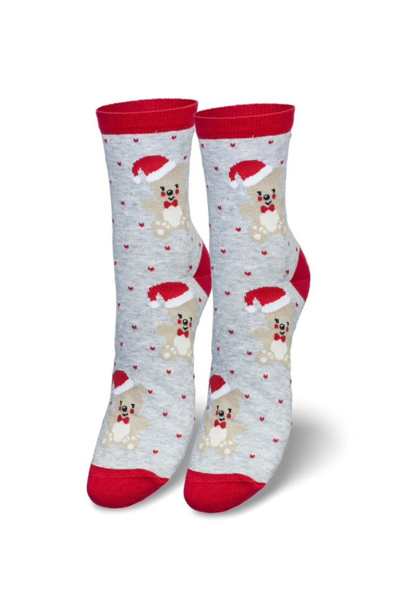 Moteriškos kalėdinės kojinės Meškiukai Dangtelyje Santa Clausa pilkos spalvos