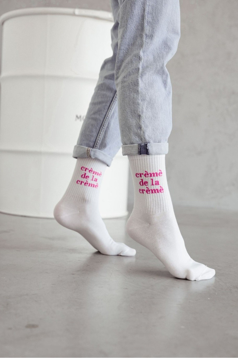 Moteriškos kojinės baltos spalvos su rožiniais įjungtais raštais Crème De La Crème