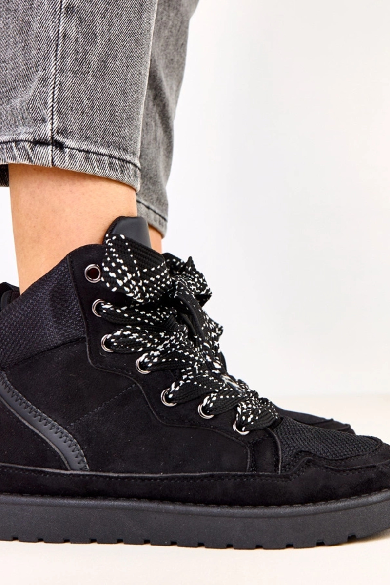 Juodi aukštaauliai sportiniai batai su storomis raištelių virvelėmis Klevis