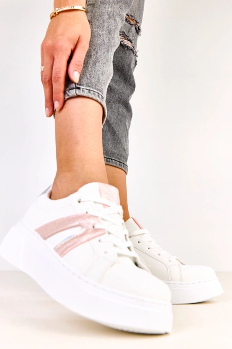 Balti sportiniai bateliai su platforma ir žėrinčiu akcentu Jeromi