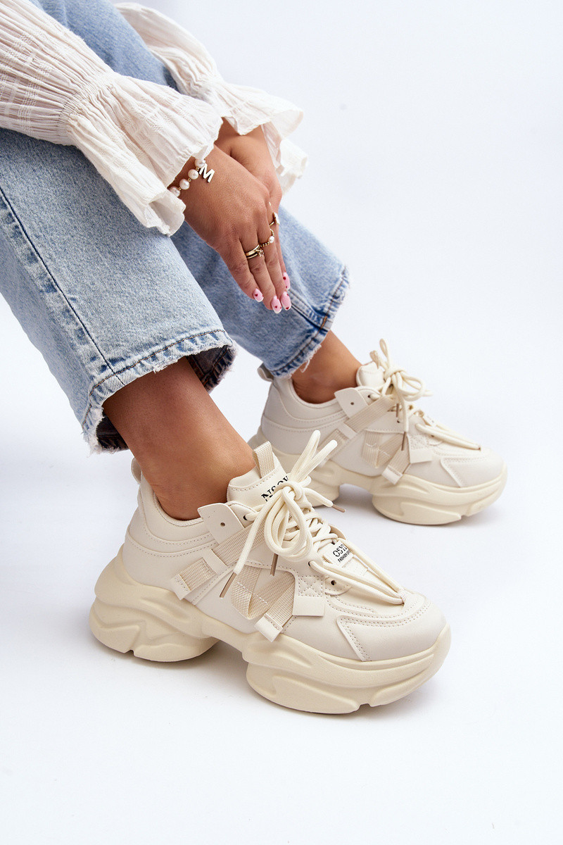 Sportiniai batai moteriški su madingais masyviais padais smėlio spalvos INindamella