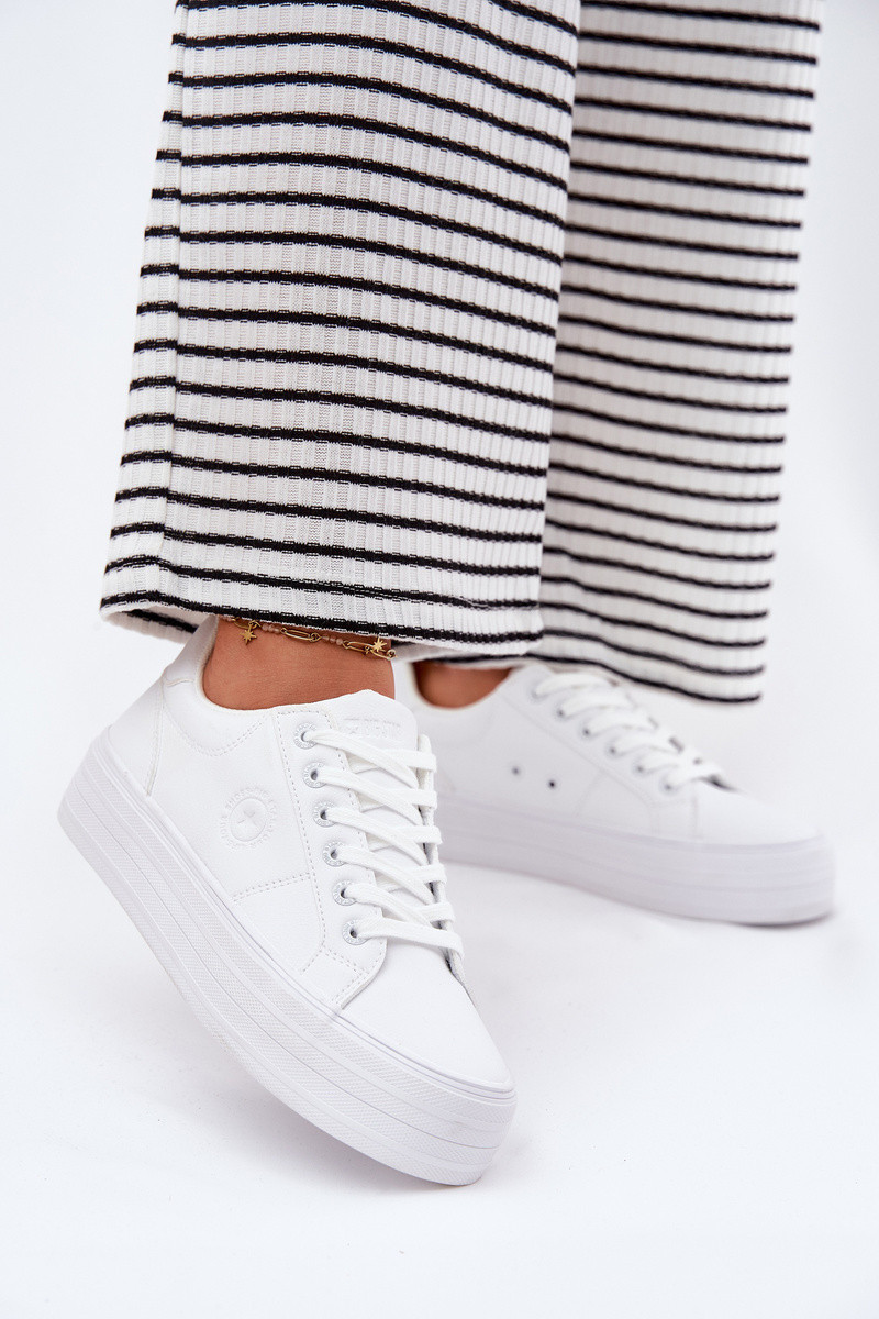 Dirbtinės odos laisvalaikio bateliai su platforma Big Star RR274298 baltos spalvos