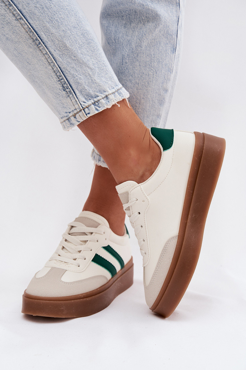 Sportinio stiliaus moteriški batai su platforma iš dirbtinės odos baltos-žalios spalvos Elaraven